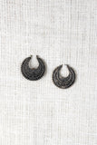 These crescent-shaped disk earrings feature etched tribal patterns and latch closure.