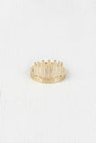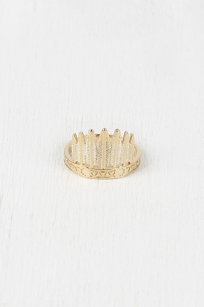 This tribal inspired ring feathers a headdress design in a textured gold-tone band. Non-adjustable.