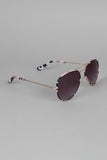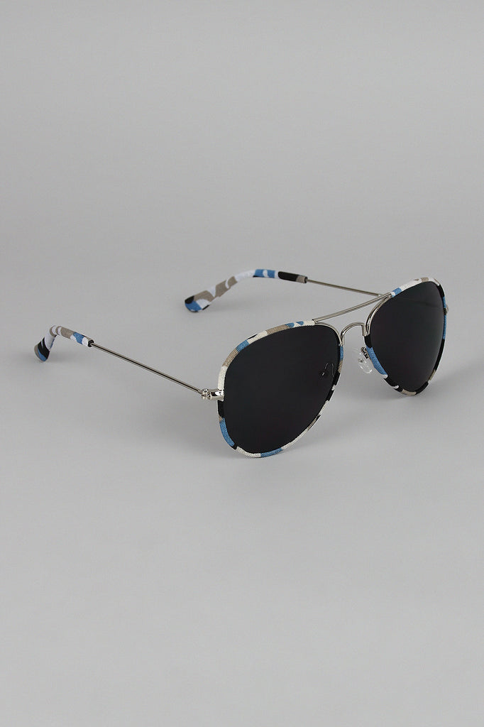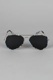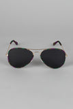 These sunglasses feature aviator style frames, multi-tone fabric trim, double bridge nose, and nose cushions.