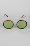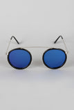 These sunglasses feature metallic and plastic frame, round glasses, single top bridge, and nose cushions.