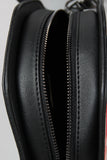 This novelty bag is an octagonal shape with a stop sign print on front and back, featuring SHOP writing. Adjustable and removable crossbody strap. Inside features full lining and open pocket. Zipper top closure.