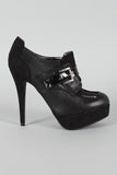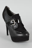 Pair these trendy platform booties with a sassy outfit for a classy fall look! Featuring round toe front, stitching detail, adjustable buckle strap accent, contrast trim, stacked platform and wrapped heel. Finished with cushioned insole for your comfort.