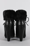 These cozy oxford lug sole , and covered cone heel. Finished with cushioned insole, soft faux fur interior lining, and lace up front closure.