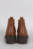 These ankle boots feature a round toe silhouette, zipper trim on side, back quilted design, and block heel. Finished with cushioned insole, smooth lining, and side zipper closure for easy on/off.