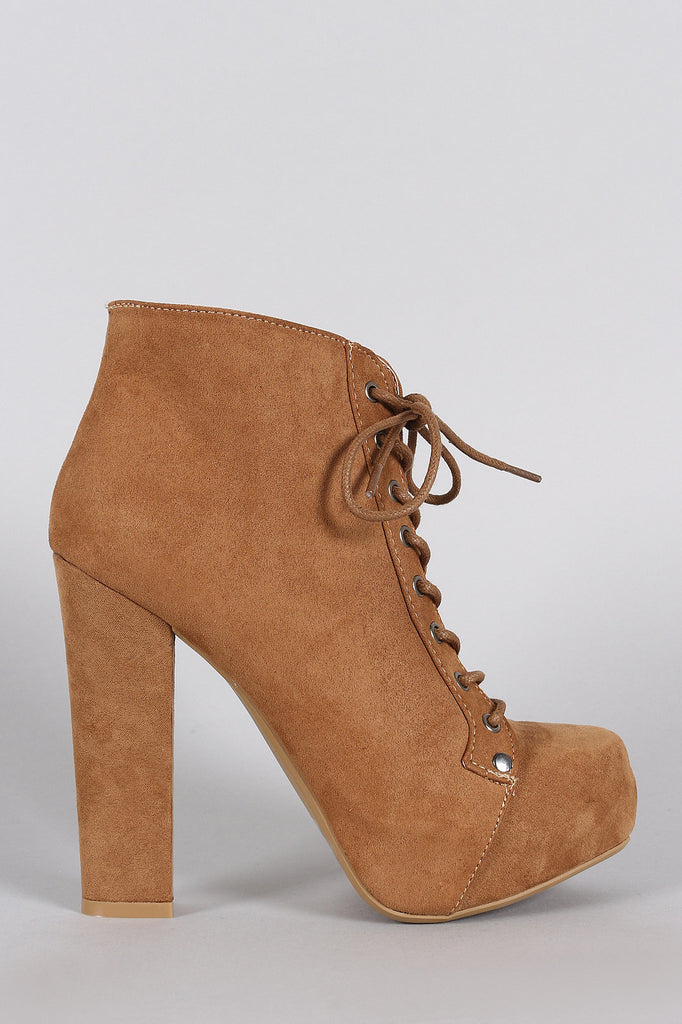 These trendy platform booties feature an almond toe silhouette, lace up front, hidden platform, and wrapped thick heel. Finished with cushioned insole and side zipper closure for easy on/off.