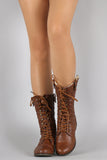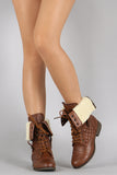 These trendy boots feature a quilted vegan leather upper, round toe silhouette, fold-down faux shearling cuff with snap button accents, low heel, and cushioned insole for comfort. Finished with a lace-up front and back zipper for a secure fit. Unfold the cuff for two different looks!