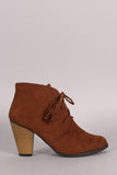 These western inspired cowgirl ankle boots feature a round toe silhouette, tassel lace-up front design, and chunky stacked heel. Finished with cushioned insole and convenient side-zip closure.