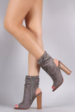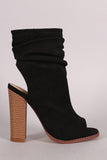 These chic booties features a slouchy shaft with cutout design back and squared open toe silhouette. Finished with a lightly cushioned insole, chunky stacked heel, and side zipper closure for easy on/off.