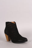 These versatile booties feature a perforated detailing with burnished accents at toe and chunky stacked heel. Finished with a lightly padded insole and side-zip closure.