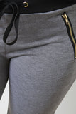 These plus size jogger pants feature soft jersey, a wide elastic waistband with self-tie bow, and contrast color cuffs. Finished with gold-tone metallic zipper pockets. Accessories sold separately. 70% Cotton, 25% Polyester, 5% Spandex.