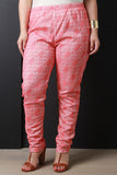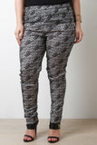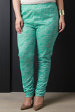 This plus size leggings feature a lace pattern overlay, elasticized waistband, tapered cut legs, and finished with lining. Accessories sold separately. Made in U.S.A. 92% Polyester, 2% Spandex.