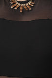 This sleeveless plus size jumpsuit features a round neckline, semi-sheer mesh panel at yoke, midsection, and legs, zipper fastener at back and taper cut legs. Accessories sold separately. 91% Polyester, 9% Spandex.