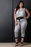 These plus size joggers feature a marled knit fabrication with contrasting ribbed knit waist band and cuff ends, and faux self-tie drawstring detail. Finished with a capri-length hemline. Accessories sold separately. Made in U.S.A. Self: 80% Rayon, 17% Polyester, 3% Spandex. Contrast: 86% Polyester, 10% Rayon, 4% Spandex.