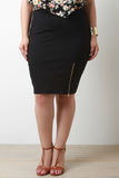 This features a high waisted elasticized band, solid hue with functional zipper trim at front, and stretchy sculpture fit. Accessories sold separately. Made in U.S.A. 65% Rayon, 30% Nylon, 5% Spandex.