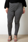These plus size leggings feature a texturized knit fabrication with stripes print pattern throughout, elasticized waistband, high waisted fit, and taper cut finish. Accessories sold separately. Made in U.S.A. 90% Polyester, 10% Spandex.