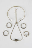 This nature inspired set features two rings and one with leave and rhinestones.