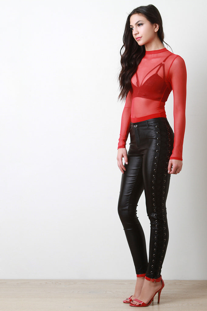 Sparkly lace up sides, belt loops, and a button and zipper fly closure. Accessories sold separately. 65% Nylon, 30% Cotton, 5% Spandex.