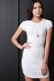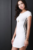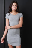 This cute casual dress features a ribbed knit fabrication, round neckline, and short sleeve construction. Finished with a detailed lining on sides, and round hemline. Accessories sold separately. Made in U.S.A. 95% Rayon, 5% Spandex.