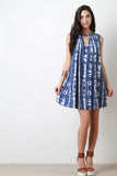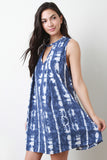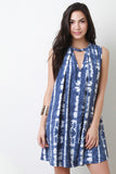 This cutesy dress features a tie dye fabrication, flowy shift cut fit, round neckline with single button closure, front v-keyhole design, and sleeveless construction. Finished with a lined underlay. Accessories sold separately. Made in U.S.A. 100% Polyester.
