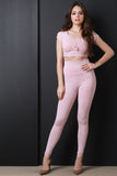 This pair of leggings feature a faded jersey knit fabrication, elasticized waistline, and stretchy taper cut legs. Accessories sold separately. Made in U.S.A. 95% Cotton, 5% Lycra.