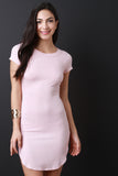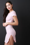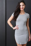 This cute dress features a soft rib knit fabrication, rounded neckline, short sleeves, slim fit, rounded hemline with high side slits. Accessories sold separately. Made in U.S.A. 95% Rayon, 5% Spandex.