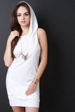 This sleeveless dress features a sweatshirt inspired design, hoodie back to a crisscross design, and a kangaroo pocket front. Accessories sold separately. Made in U.S.A. 95% Polyester, 5% Spandex.