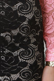 This stylish midi dress features semi-sheer floral lace fabrication, two tone colorblock design, plunging v-neckline, wide elasticized waistband, and longsleeves construction. Finished with an exposed front zip-up closure, and partially lined.