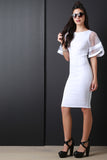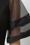 This mesh stripe detailed sleeves, and stretchy sculpture fit. Accessories sold separately. Accessories sold separately. Made in U.S.A. 95% Polyester, 5% Spandex.