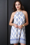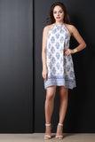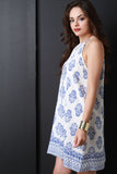 This cute shift dress features a floral motif pattern with printed boarder hem, adjustable tie neck, back keyhole, with a relaxed shift dress silhouette. Accessories sold separately. Made in U.S.A. 100% Polyester.