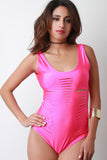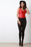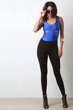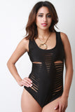 This edgy bodysuit features smooth stretch fabric, scoop neckline, multiple slits, sleeveless construction, and deep scoop back. Accessories sold separately. Made in U.S.A. 80% Nylon, 20% Spandex.