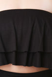 This crop top features jersey knit, tiered ruffle design, and strapless construction. Accessories sold separately. Made in U.S.A. 100% Rayon.