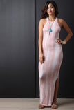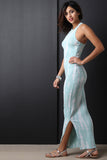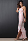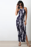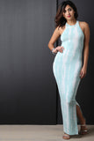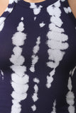 This casual dress features a soft knit fabrication, tie dye print, mock neckline, racerback cut, slim curve hugging fit, finished with a knee high side slit.Accessories sole separately. Made in U.S.A. 95% Rayon, 5% Spandex.