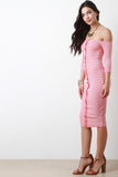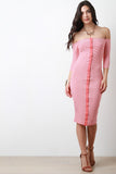 This midi length , and snap button up front. Accessories sold separately. Made in USA. 48% Rayon, 48% Polyester, 4% Spandex.