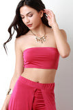 This casual tube top features a smooth stretchy knit fabrication, and finished with an elasticized trim. Accessories sold separately. Made in U.S.A. 95% Polyester, 5% Spandex.