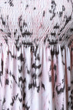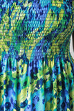 This plus size maxi dress features abstract print, ruched elasticized tube neckline, and flowy bottom. Accessories sold separately. Made in U.S.A. 95% Polyester, 5% Spandex.