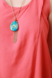 This top and a dress, features a round neck line, semi-sheer fabrication, wrap-style silhouette, and sleeveless construction. Finished with a high front slit. Accessories sold separately. Made in U.S.A. 100% Polyester.