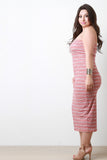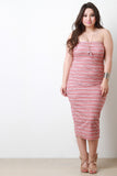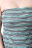 This plus size dress featured a ribbed knit fabrication, stripes pattern print, and elasticized strapless tube neckline. Accessories sold separately. Made in U.S.A. 67% Polyester, 29% Rayon, 4% Spandex.