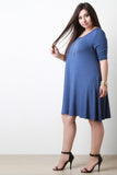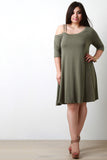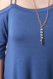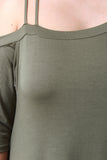 This plus size dress features an asymmetrical design, one off the shoulder sleeve with double spaghetti straps, one regular half sleeve, soft knit fabrication, finished with a flowy shift dress fit. Accessories sold separately. 97% Rayon, 3% Spandex.