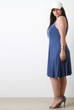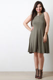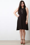 This dress features a soft jersey knit fabrication with, scoop neckline, midi length hem and flowy shift cut fit. Accessories sold separately. Made in U.S.A. 97% Rayon, 3% Spandex