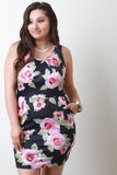 This dress features a round neckline with box pleating accent, sleeveless, cinched high waisted seam, side pockets, sculpture fit, and floral print design. Accessories sold separately. Made in U.S.A. 91% Polyester, 9% Spandex.