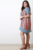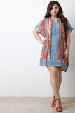 This beautiful plus size features a tribal print fabrication, split v-neckline, cap sleeves, shift cut fit, and high low hem. Accessories sold separately. 100% Rayon.