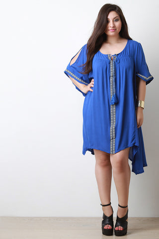 Plus Size Ladder Trim A-Line Dress