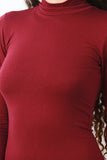 This minimalist dress features a soft cotton knit, turtle neck, long sleeves, and back zipper closure. Accessories sold separately. Made in U.S.A. 94% Cotton, 6% Spandex.