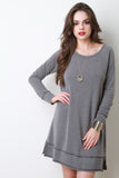 This  long sleeve dress  features soft knit, round neckline, raglan sleeves, small side slits, and stitching accents at hem. Accessories sold separately. Made in U.S.A. 58% Rayon, 38% Polyester, 4% Spandex.