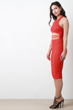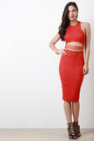 This sexy midi laced midriff, racer back with zipper closure, and finished with lining.
