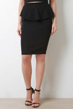 This simply chic midi skirt features textured knit, elasticized waist, peplum design, and pencil cut. Accessories sold separately. Made in U.S.A. 95% Polyester, 5% Spandex.