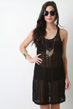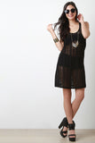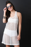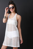 This sheer crochet fabrication, sleeveless design, relaxed fit finished with racer-back style straps. Accessories sold separately. 65% Polyester 35% Cotton.