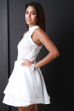 This gorgeous mini -length hemline and hidden rear zip-up closure. Accessories sold separately. Self: 100% Polyester, Contrast: 100% Cotton.