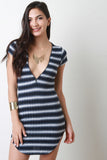 This dress features and adjustable zipper v neckline, soft rib knit fabrication, cap sleeves, bodycon fit, finished with a rounded hemline. Accessories sold separately. Made in U.S.A. 53% Polyester, 43% Rayon, 4% Spandex.