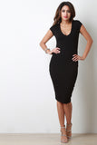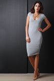 This chic bodycon dress features soft rib knit, scoop neckline, short sleeves, lining, and midi length. Accessories sold separately. Made in U.S.A. 95% Rayon, 5% Spandex.